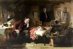 El Doctor de Sir Luke Fildes (1891) refleja una situación que los médicos conocemos bien. El enfermo no mejora. A menudo en la atención domiciliaria los únicos medios diagnósticos disponibles en el acto son la habilidad del médico un fonendoscopio, una linterna y un martillo de reflejos. Las técnicas complementarias requieren evacuar al enfermo y hay que valorar si se puede esperar o se necesita realizar las pruebas sin demora. La época en la que se ambienta el cuadro no da opciones al doctor más allá de su conocimiento. Por la actitud debe llevar mucho tiempo velando a su enfermo, se ha sentado y observa preocupado que la evolución es desfavorable. Probablemente acabe de explorarla ahora mismo. Está repasando mentalmente lo que le han contado los padres de la niña, los hallazgos de su exploración, las medidas que ha tomado, las repuestas, sopesa todos los factores e intenta darles un nuevo sentido que le explique la falta de mejoría. En los niños y los pacientes muy ancianos la falta de colaboración complica aún más el diagnóstico quizás por eso el doctor la mira y piense “si tan solo pudieras hablar”. En breve tomará una decisión. La familia es pobre. Hay ropa tendida en la habitación, no hay dos sillas hermanas y los techos son bajos. Posiblemente lo que vemos constituye toda la casa. Es una visita de las que entonces se daban en llamar de beneficencia. Al fondo la madre rompe a llorar mientras mantiene sus manos en actitud de oración y su marido trata de consolarla apoyándole la mano en el hombro. No sabemos si es un problema diagnóstico o terapéutico pero en si la esencia es clara, hay una situación incierta de un ser querido en probable riesgo vital y las emociones afloran en los familiares.