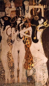 En este detalle de Las fuerzas enemigas (1902) vemos tres Gorgonas: la Enfermedad, la Locura y la Muerte. Klimt resume algunos de los grandes temores de cualquier paciente a los que habría que añadir dolor y sufrimiento. En ciertos momentos se planteó el uso de determinados tratamientos para aumentar la supervivencia sin considerar suficientemente lo que ello supone para la calidad de vida del paciente. Llegados al punto de elegir hay pacientes que prefieren tratamientos menos agresivos que les permiten mantener una calidad de vida más elevada aun a costa de una menor supervivencia. Actualmente supervivencia y calidad de vida se consideran de forma conjunta.